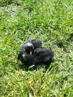 The white one was so cute because it kept on following my husband around. I joked about it being the only young chick he'd probably ever have him follow around.
